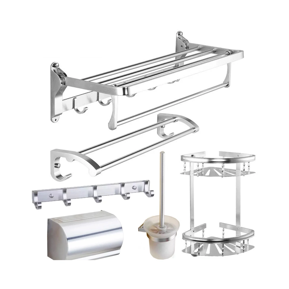 Setul de accesorii baie dispune de un design clasic si curat. Puteți obține deplină armonie cu accesoriile acestui set în baia dvs., nu trebuie să vă chinuiți cu variațiile produselor diferite. Calitatea durabilă a materialului folosit, este asigurată de procesul de anodizare folosit în timpul producției. Acesta este un proces de tratare a suprafeței care previne coroziunea suplimentară a aluminiului și îl face multirezistent la daunele externe (zgârieturi, uzură, coroziune). Suprafețele vopsite în acest fel sunt compacte și și nu se desprind. Pachetul conține toate elementele necesare pentru montaj. Suportul periei de toaletă este din sticlă sablată.