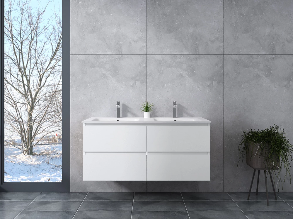 Mobilierul nostru DIJON este echipat cu 4 sertare spațioase cu sistem de închidere soft close și o chiuvetă ceramică dublă, adâncă, cu grosimea de 2 cm, în varianta slim.